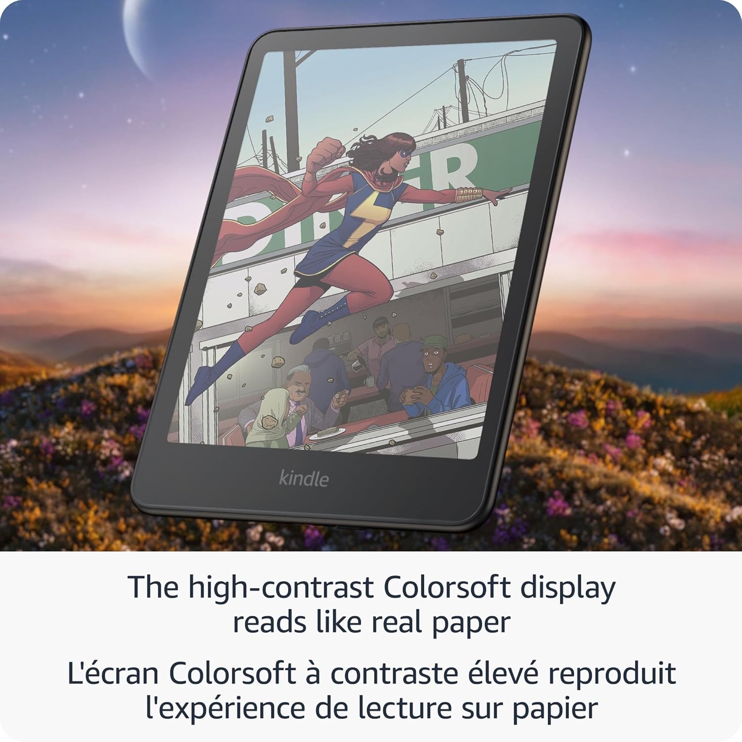 Read in colour – The new 7″ Colorsoft display is high-contrast and easy on the eyes, with paper-like colour that brings covers and content to life. Highlight text in yellow, orange, blue, and pink.
