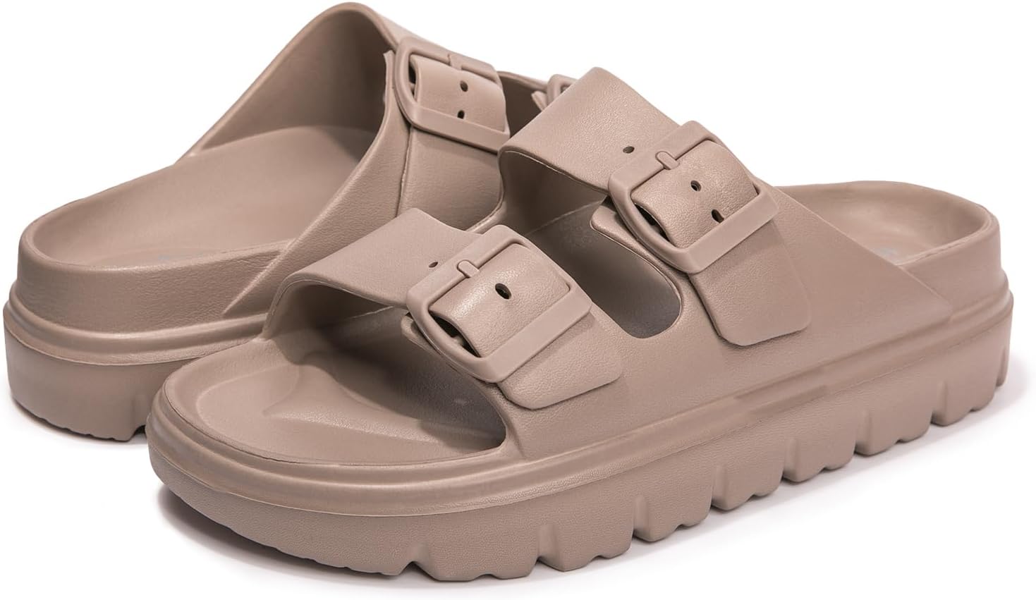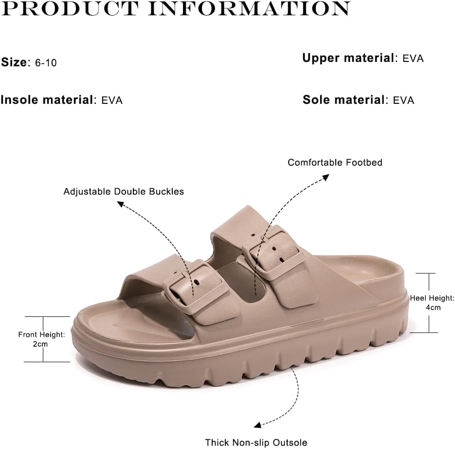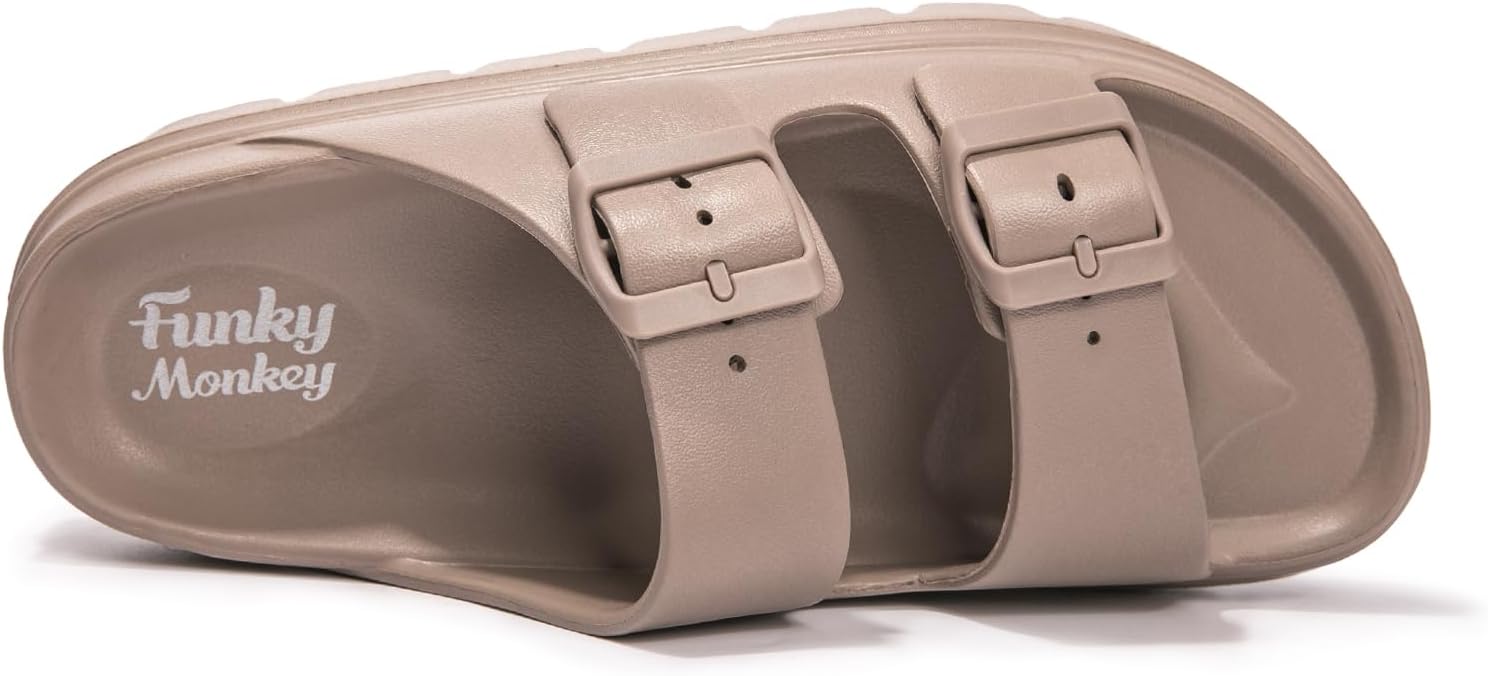 FUNKYMONKEY Women’s Comfort Slides Double Buckle Adjustable EVA Flat Sandals
