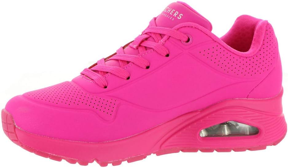 The Skechers Women’s Uno-Night Shades Sneaker combines comfort and style with features like the Air-Cooled Memory Foam insole and Skech-Air visible airbag midsole. The 1.5-inch heel adds a stylish lift while maintaining comfort, and the perforated synthetic Durabuck upper provides breathability and durability. Ideal for sporty casual wear, these sneakers offer the perfect combination of style and comfort for everyday use.